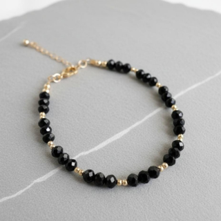 Sophistication for your ankles. This stunning piece features faceted jet-black beads that catch the light with every movement, accented by shimmering gold-tone spacers. It’s the perfect blend of "jewelry-grade" elegance and everyday wearability.